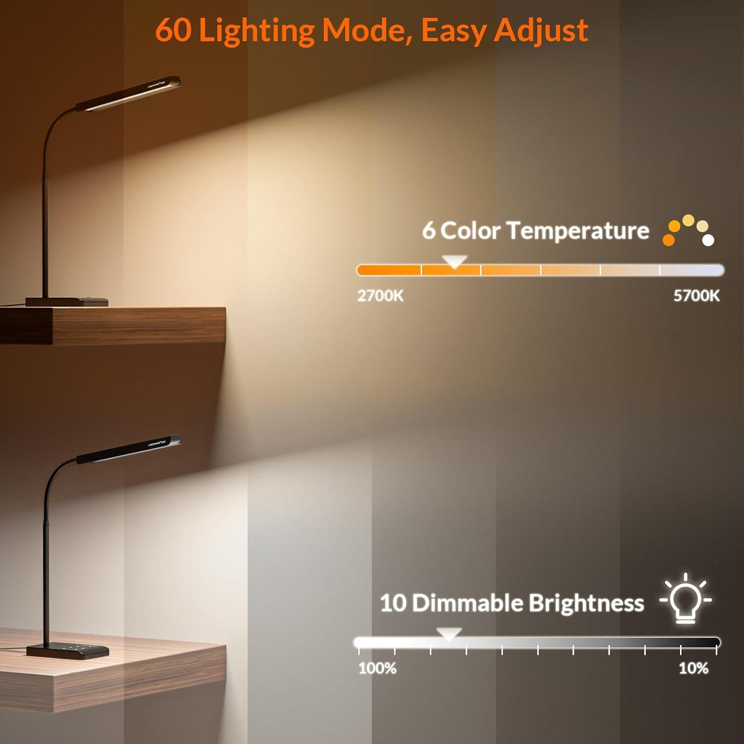 - Get your hands on our exclusive LED Desk Lamp, 12W Reading Desk Lamp for Office Home with 60 Lighting Modes, Touch Control & Timer Function, 750LM Bright Eye-Caring Gooseneck Desk Light Table Lamp for Study, Work, Black(Silver) collection, now at a discounted price.