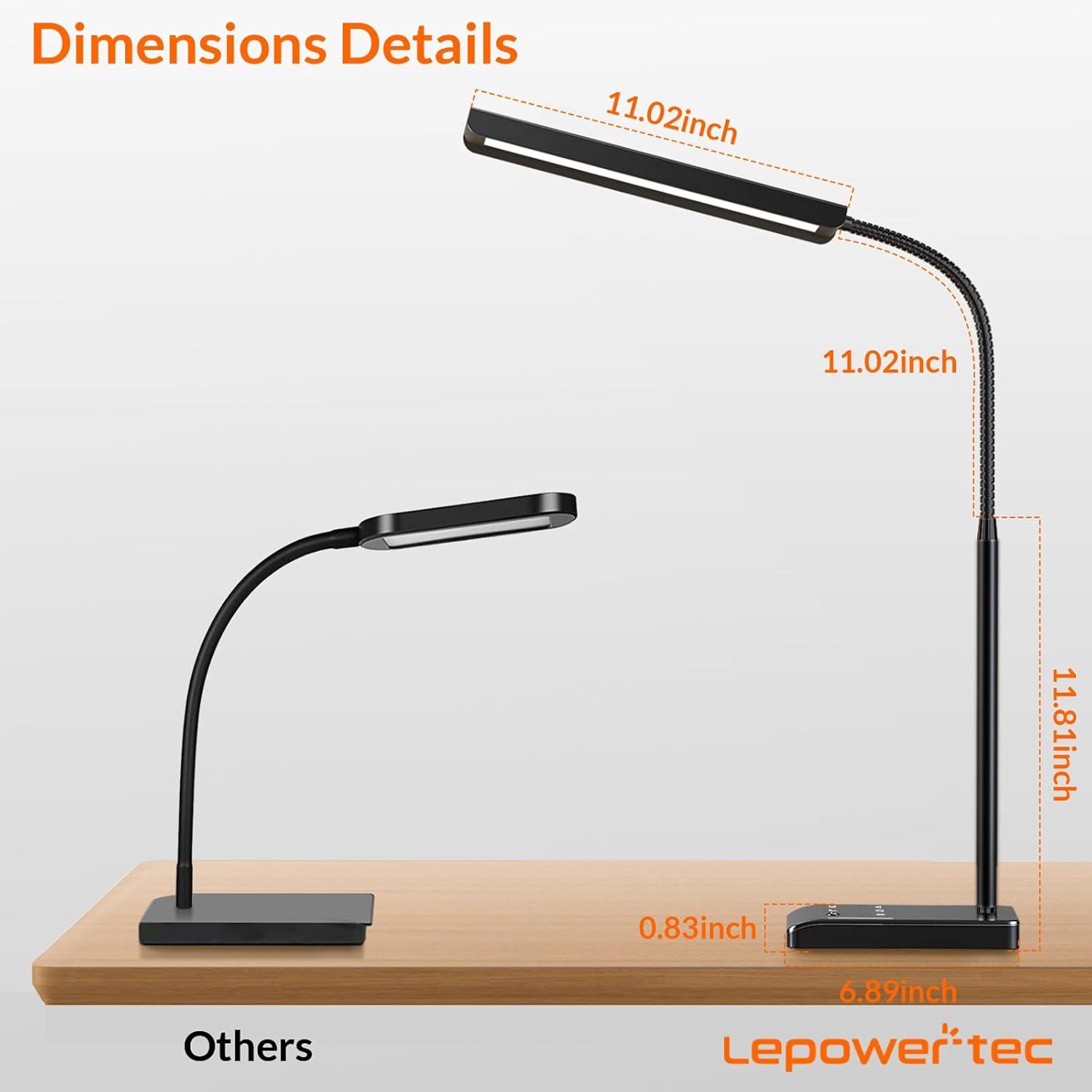 LEPOWER Desk Lamp, 800LM LED for Home Office, 12W Reading for Desk, Eye-Caring Light, Touch Table Gooseneck Lamp, 50 Lighting Modes, Bright for Bedroom, Study (Black)(Gray)