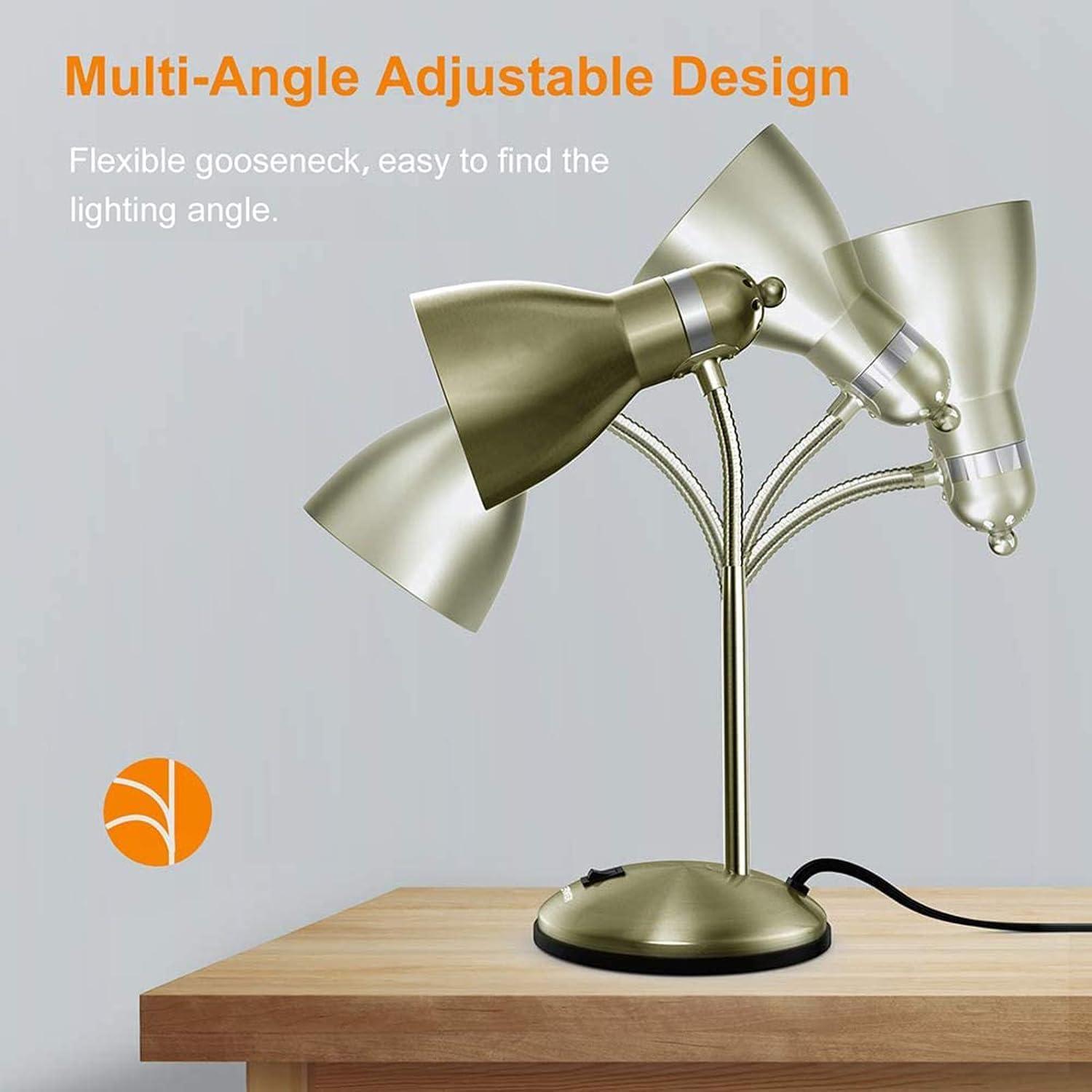 LEPOWER Metal Desk Lamp, Eye-Caring Table Lamp, Study Lamps with Flexible Goose Neck for Bedroom, Home Office (Matte Black)(Gold)