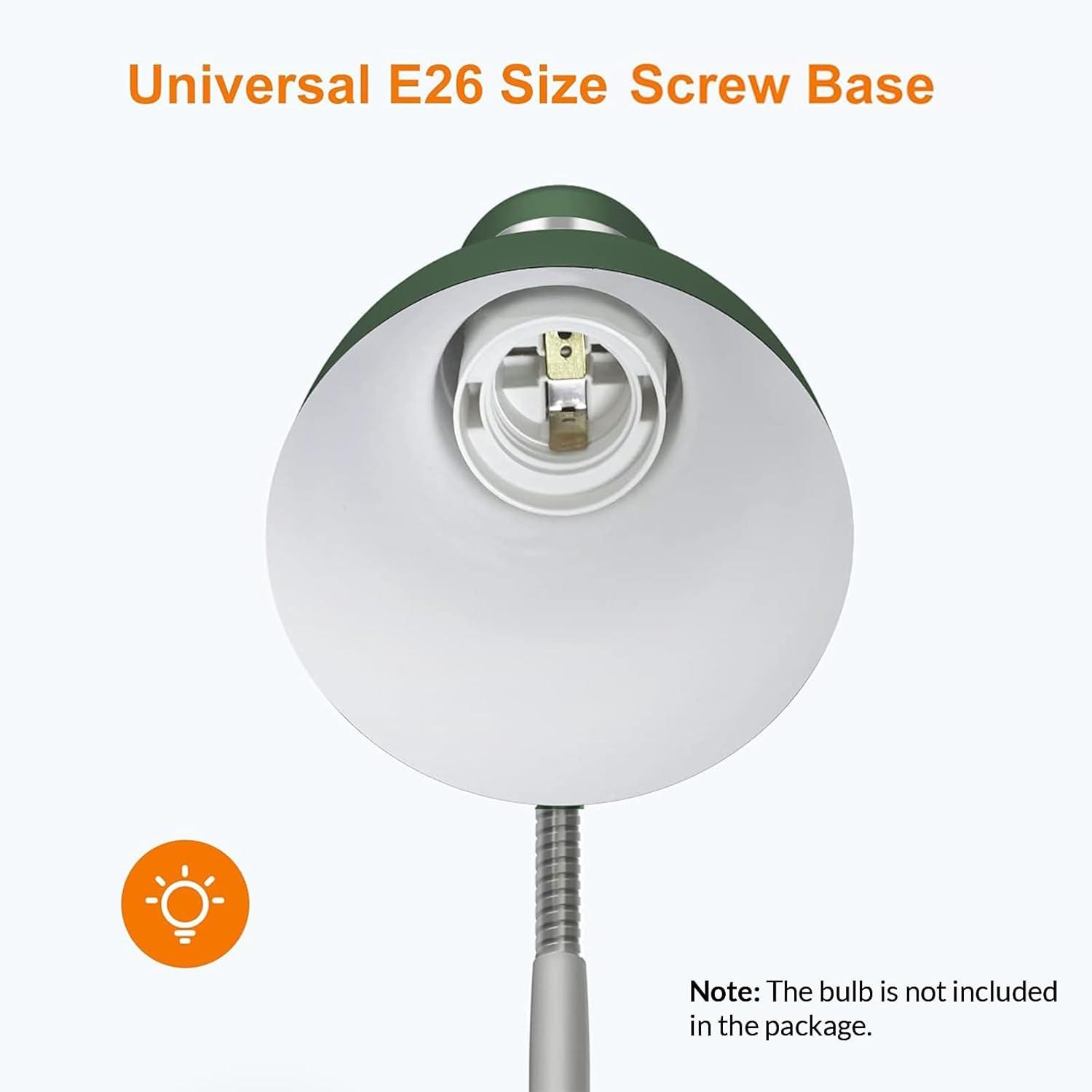 LEPOWER Metal Desk Lamp, Adjustable Goose Neck Architect Table Lamp with On/Off Switch, Swing Arm Desk Lamp with Clamp, Eye-Caring Reading Lamp for Bedroom, Study Room &Office (Sandy Black)(White)